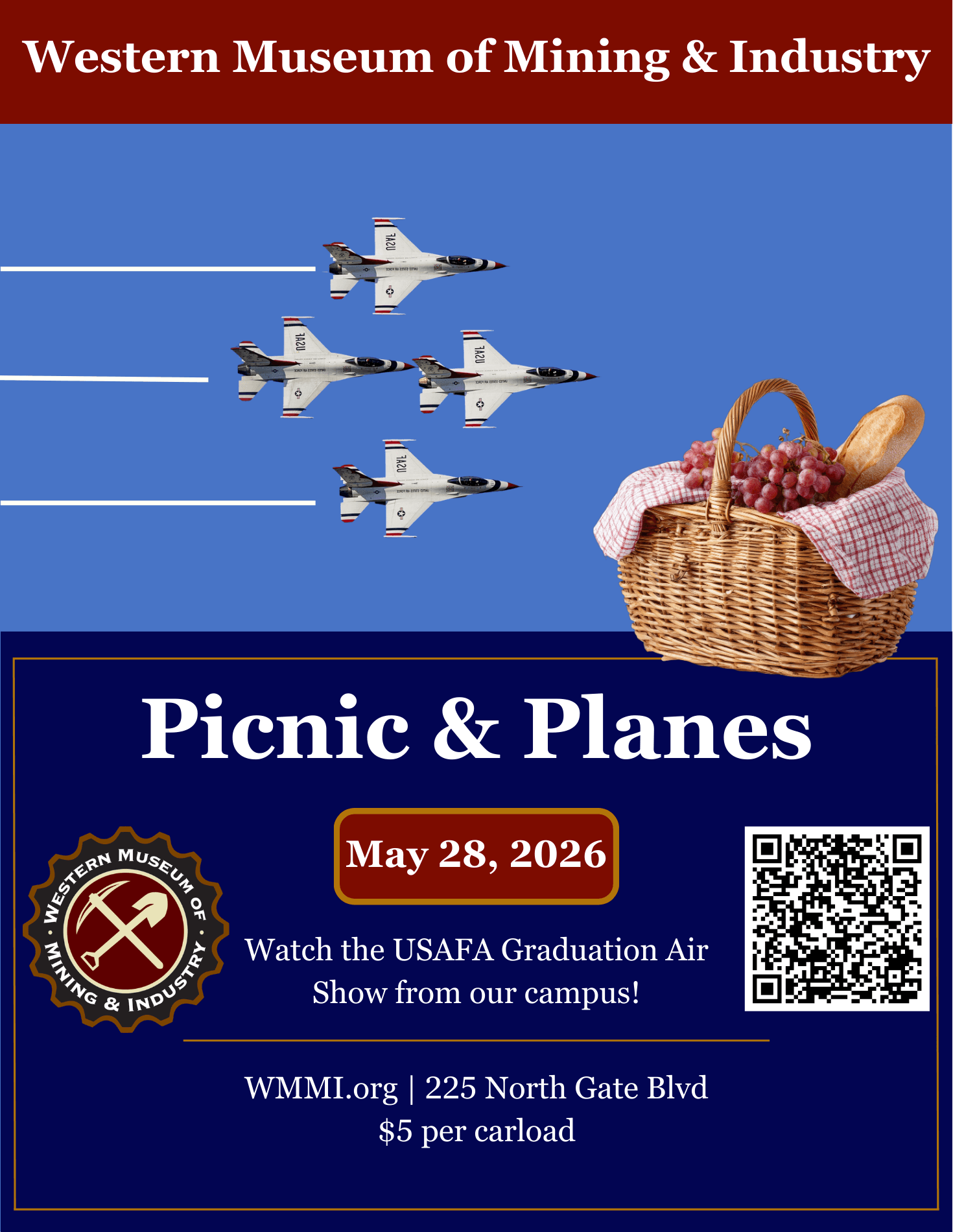 The Western Museum of Mining is honored to be the Air Force Academy’s neighbor…and lucky too! The Mining Museum is the perfect place to watch the amazing aerial acrobatics of the U.S. Air Force Thunderbirds.
